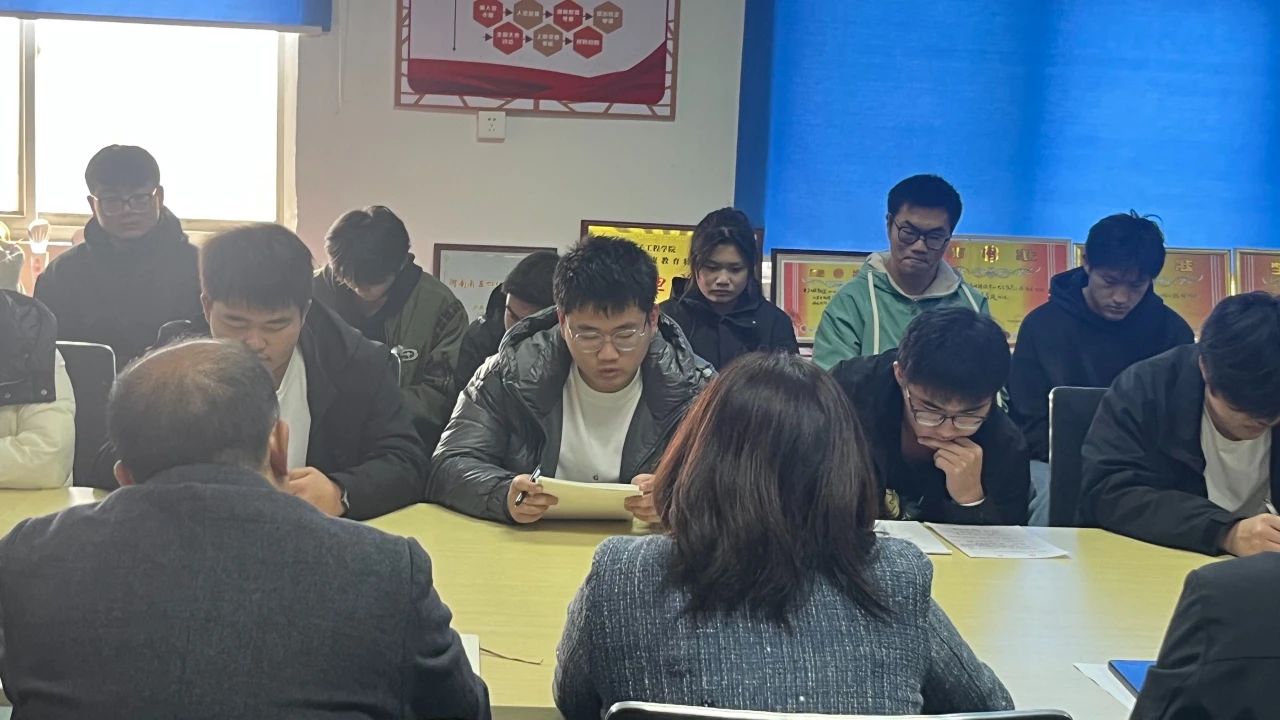 綜合辦公室主任田峰林發(fā)言,表達對學(xué)生學(xué)習(xí)生活情況的關(guān)心,簡要說明學(xué)院在提升教學(xué)質(zhì)量、改進教學(xué)方式等方面所做的努力,并鼓勵學(xué)生積極表達意見和建議。