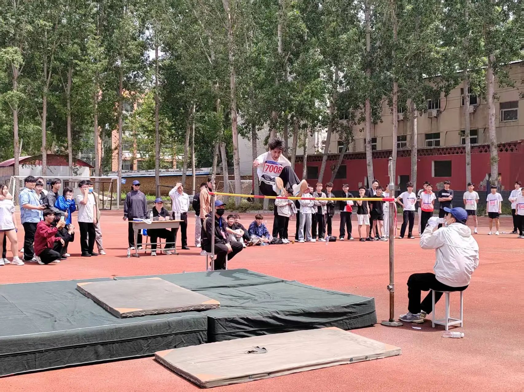 跳遠場上運動健兒們化身騰空飛燕。擺臂、蹬地、起跳!剎那間身體一躍而起,落地瞬間沙粒飛濺,我們在空中劃出了條條優(yōu)美的拋物線。丈量的卷尺越來越遠,我們的勁頭越來越足!