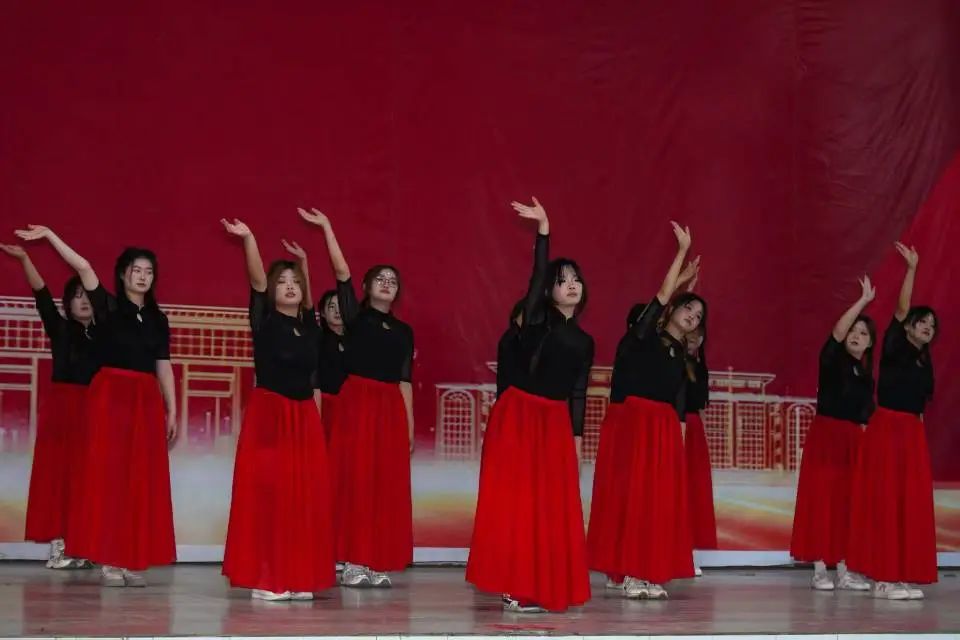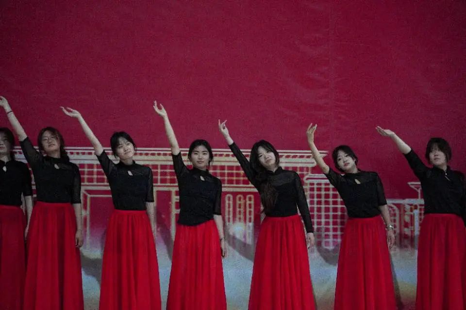 比賽現(xiàn)場(chǎng),電子工程學(xué)院的同學(xué)們身著精心準(zhǔn)備的服裝,以飽滿的熱情、精湛的技藝和深刻的情感投入,將舞蹈中蘊(yùn)含的紅色精神展現(xiàn)得淋漓盡致。從動(dòng)作編排到表情管理,從節(jié)奏把控到情感傳遞,每一個(gè)細(xì)節(jié)都處理得恰到好處,她們用靈動(dòng)的舞姿,將那段波瀾壯闊的歷史生動(dòng)地展現(xiàn)在觀眾眼前。從開(kāi)場(chǎng)時(shí)的壓抑與掙扎,到中間的奮起反抗,再到最后的勝利歡呼,舞者們用舞蹈的起承轉(zhuǎn)合,帶領(lǐng)觀眾走進(jìn)了那個(gè)熱血沸騰的年代,深刻感受到了革命先輩們?yōu)榱死硐牒托叛?,不惜拋頭顱、灑熱血的偉大精神。
