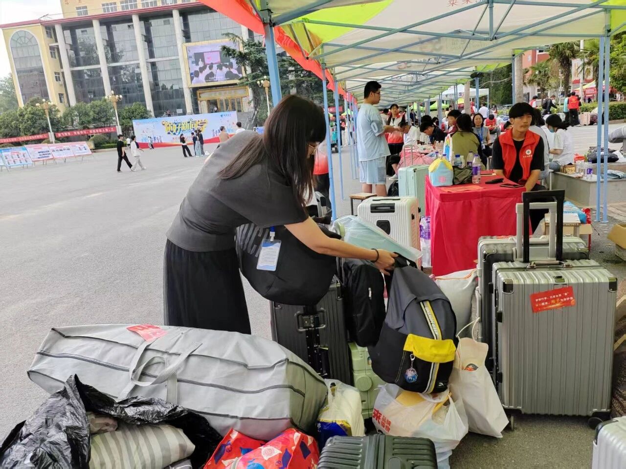 新生輔導(dǎo)員們忙碌而熱情,幫助新生搬運(yùn)行李、指引路線;主動(dòng)分享大學(xué)生活經(jīng)驗(yàn),笑容溫暖;新生仔細(xì)打量著校園,眼里寫(xiě)滿了好奇與期待。