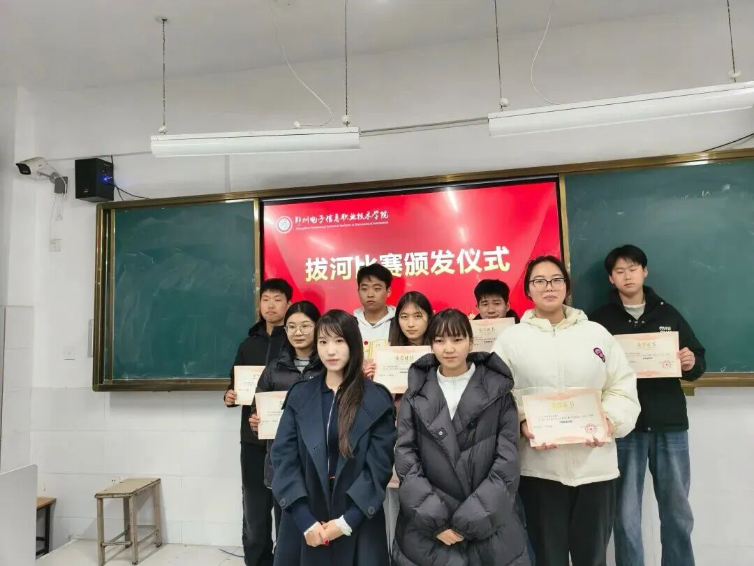 2025年12月15日下午,電子工程學(xué)院在五號(hào)樓105舉行了拔河比賽的頒獎(jiǎng)儀式,為優(yōu)秀學(xué)子們的卓越表現(xiàn)進(jìn)行表彰。出席本活動(dòng)的有黨總書記李玲玲、輔導(dǎo)員代表梁哲