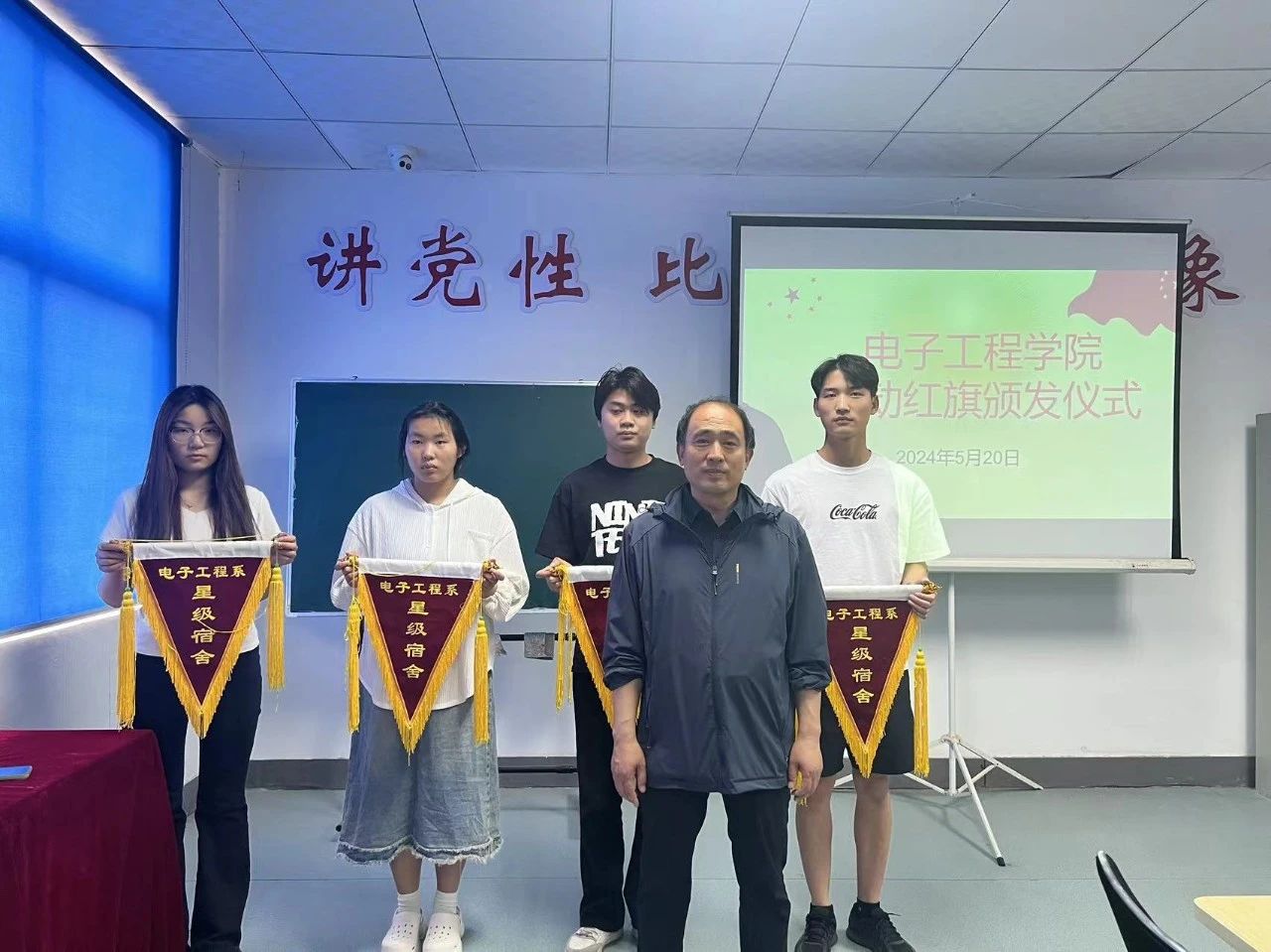 為了進(jìn)一步規(guī)范學(xué)生日常行為,培養(yǎng)良好的生活習(xí)慣,促進(jìn)班集體整體素質(zhì)和紀(jì)律性的提升、增強(qiáng)凝聚力。學(xué)院對(duì)各個(gè)班級(jí)進(jìn)行檢查,并于2024年5月20日下午開展了流動(dòng)紅旗頒發(fā)儀式,其中黨總書記王正偉、學(xué)生支部書記李玲玲對(duì)上周優(yōu)秀宿舍頒發(fā)流動(dòng)紅旗,各班級(jí)班長、團(tuán)支書、學(xué)生會(huì)干部參與本次頒發(fā)儀式。