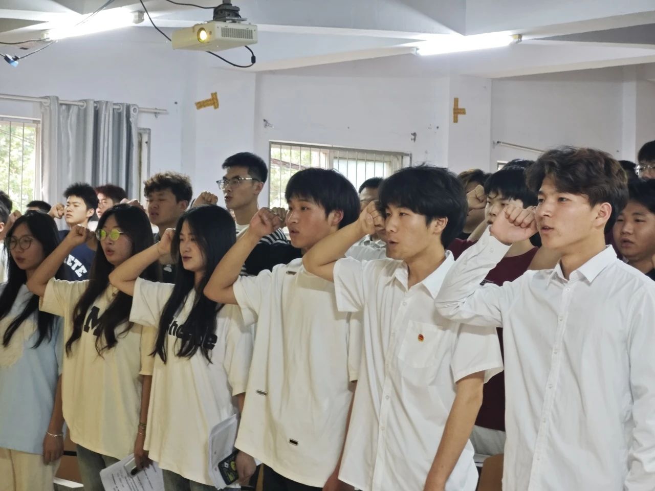儀式第二項,由來自23新能源03班的優(yōu)秀共青團員張池帶領全體新發(fā)展團員進行宣誓。入團誓詞是一份鏗鏘有力、銘刻初心的政治誓言、無悔的承諾,更是一份新的責任和使命。作為新時代優(yōu)秀的青年代表,我們要始終與黨站在同一戰(zhàn)線上,始終自覺做到一心一意聽黨話、跟黨走,堅定“四個自信”,做到“兩個維護,努力成長為黨、國家和人民所期盼的有志青年。